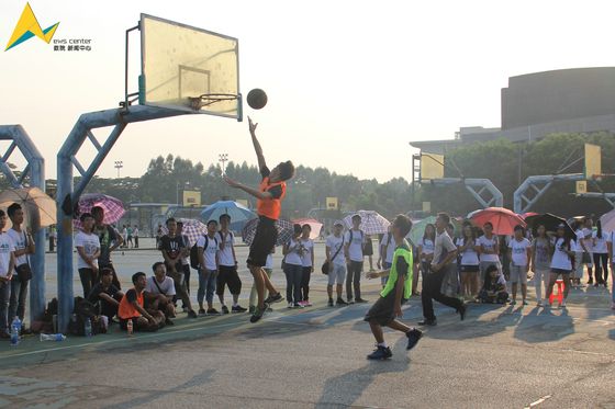 新生杯篮球赛总决赛在梅苑篮球场拉开帷幕,到场的嘉宾有成人影院