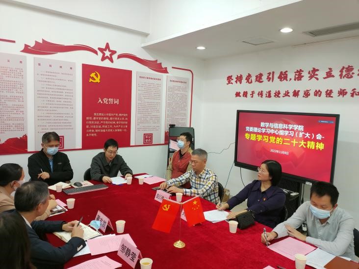 院长彭济根教授作交流发言,他表示,习近平总书记在二十大报告中指出“教育、科技、人才是全面建设社会主义现代化国家的基础性、战略性支撑,必须坚持科技是第一生产力、人才是第一资源、创新是第一动力”,这充分体现了党中央建设教育强国、科技强国和人才强国的坚定决心与信心。作为一名高等教育工作者,我们要始终牢记“为党育人、为国育才”的宗旨,全身心地投入到教书育人的工作中,走在教学第一线,兢兢业业,勇于创新,高质量地落实立德树人根本任务,为党和国家培养高质量专业人才,从而为中华民族的伟大复兴贡献力量。不断探索高等教育发展的内在规律,切实把握好教学与科研之间的辩证关系,坚持人才的自主培养目标,加强一流学科建设,不断完善教学育人体系,建设政治素质过硬、业务能 力精湛、育人水平高超的高素质教师队伍。要面向数学学科前沿,以国家战略需求、粤港澳大湾区地方经济建设需求为导向,加强科研创新体系和社会服务体系建设,强化有组织科研攻关,推动我校数学学科的整体发展,促进科研成果在粤港澳大湾区重大产业布局中的应用,在我国科技发展以及粤港澳大湾区社会与经济发展中做出作为数学人的贡献。