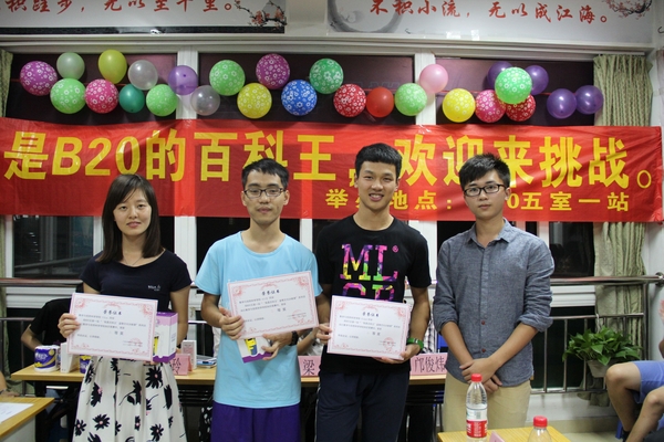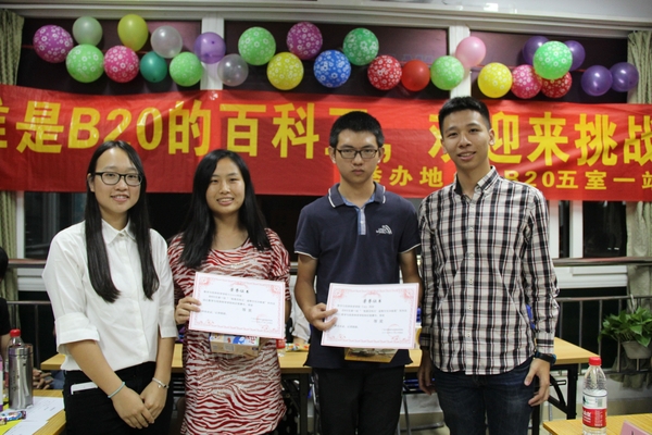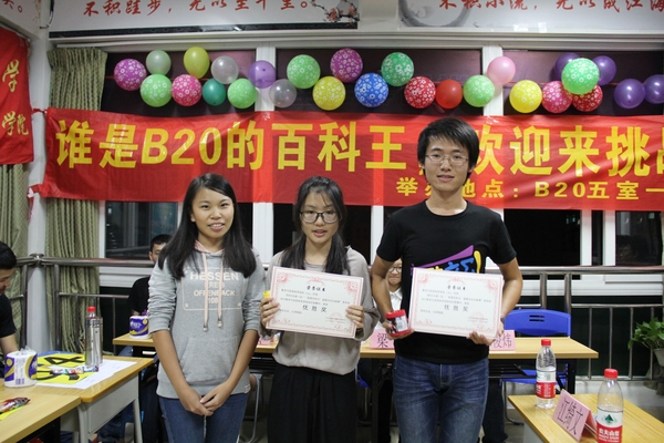 11月24日,我院B20五室一站系列活动之“我是百科王”复活赛和决赛在B20五楼活动室成功举办。我院学工办主任兼2012级辅导员顾书老师、团委书记兼2013级辅导员杜亚辉老师、2014级辅导员胡啟岚老师、我院兼职辅导员狄华斐博士以及B20五室一站兼职辅导员包玉玲老师出席了本次比赛。