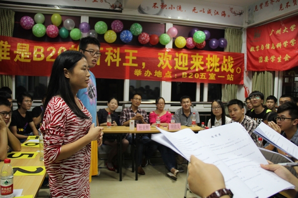 主持人宣布活动开始后,首先进行的是复活赛,林继煜,冯秀文,林龙章三位选手紧张地准备竞赛。复活赛中每一位选手轮流进行回答,最后根据得分的高低选出两名选手进入最后的决赛。经过一轮紧张的比赛后,进行互动游戏环节,在场的每一位同学都可以抢答,而且还可以获得丰厚的礼品。现场紧张的气氛随着游戏地进行而变得欢快。经过紧张的比赛,最后冯秀文和林龙章进入决赛。
