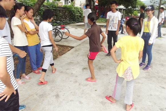 下午3点,同学们在村委楼旁边小学操场上举办了第二课堂的户外活动。本次三下乡的第二课堂分为两个部分,分别是7月16日的户内科普知识宣传教育以及今天的户外活动。第二课堂户外活动以体育活动为主,有网球投掷、跳绳、踢毽子、篮球等项目。有些游戏刚开始时候没有小朋友去参加,工作人员在游戏场地上亲自示范,吸引小朋友来玩,小朋友陆陆续续地来参加到这些游戏。