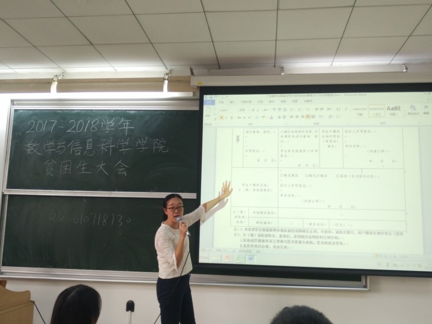 在文新119召开了本学年的贫困生大会,本次会议主要由资助负责人胡啟岚老师主持。