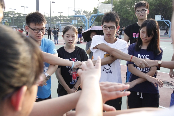 最后一个游戏环节为解手链,大家交叉牵手,形成手链,想办法解开手链形成圆圈。此游戏中解开手链的方法不唯一,为参与者提供了思考的空间,同时丰富了游戏的内涵。令人意想不到的是,精算班仅用了两秒九就解开手链形成圆圈!