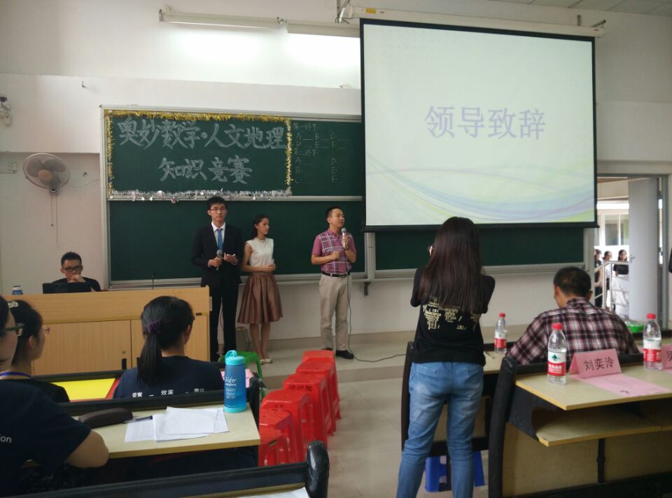 与地理科学学院两院联合举办的第十一届学术科技节之“奥妙数学·人文地理”知识竞赛在理南511教室拉开帷幕。出席本次比赛的嘉宾有成人影院