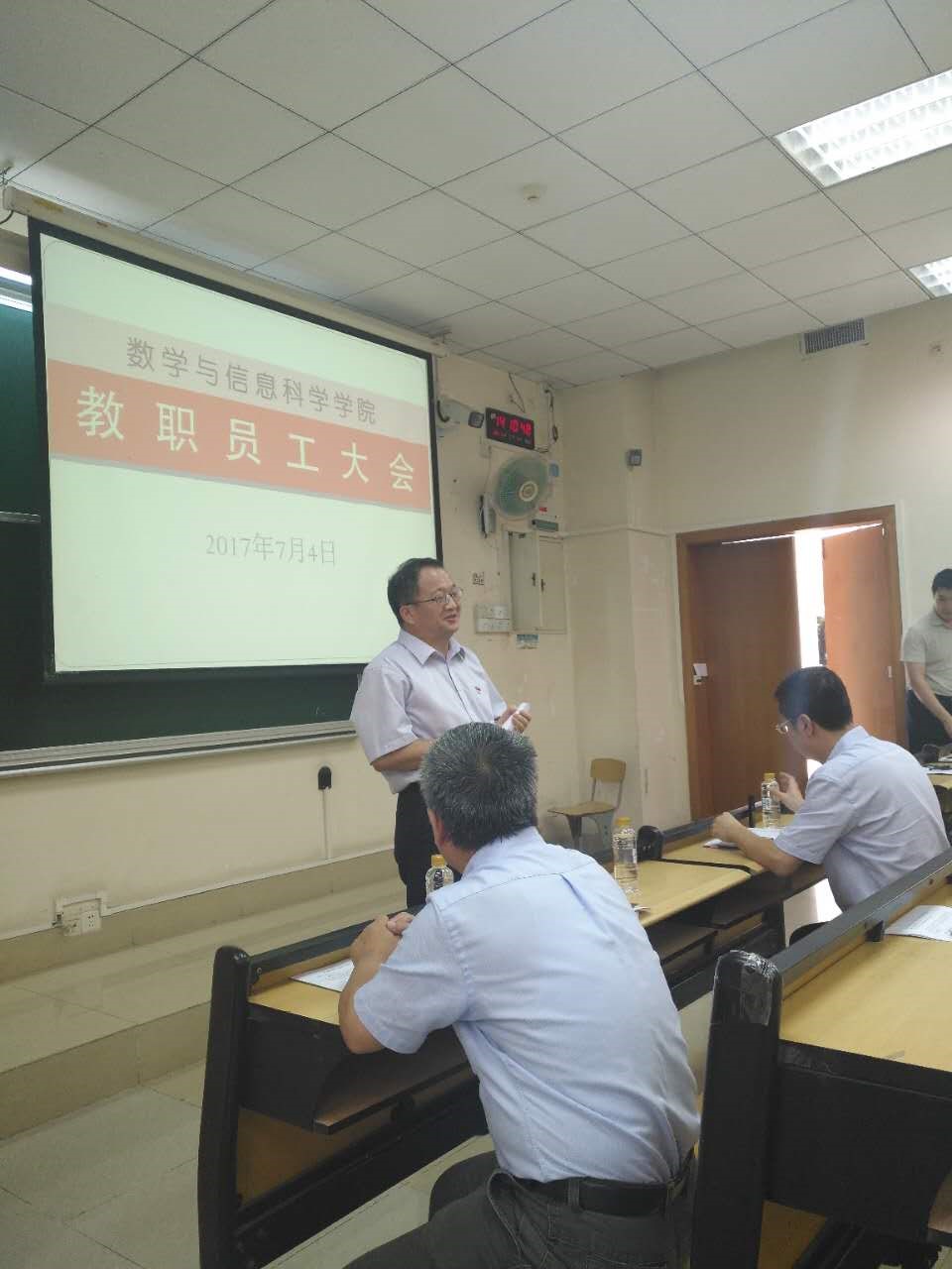 2017年7月4日下午,我院在文清楼120室召开全院教职工大会,校党委屈哨兵书记、组织部秦春部长出席会议,大会由学院党委书记黄志凯同志主持。