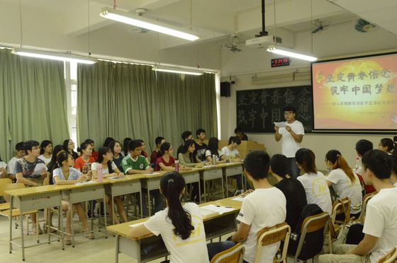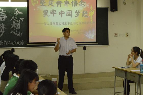 数学13(2)班团支部开展了以“坚定青春信念,筑牢中国梦想”为主题的团日活动。活动以宣传贯彻习近平总书记系列重要讲话精神“四进四信”为核心开展,出席本次活动的嘉宾有学院党委副书记曾学毛同志,数学13(2)班班主任焦锋老师,学院团委书记杜亚辉老师,以及来自于我院2011级信息与计算科学专业的成人影院