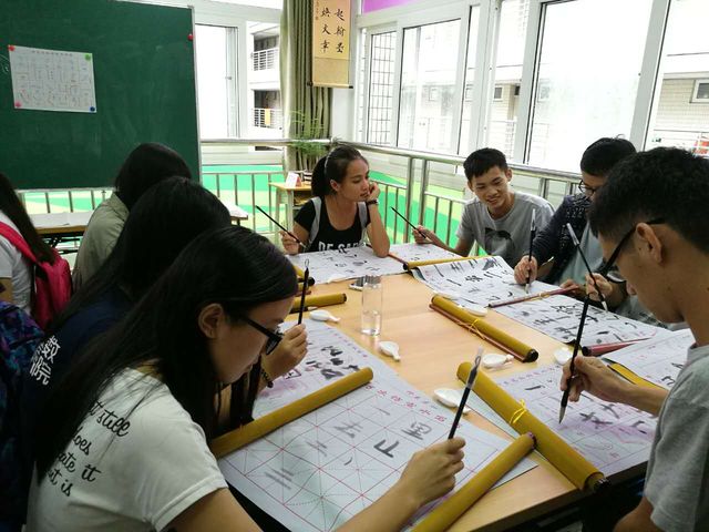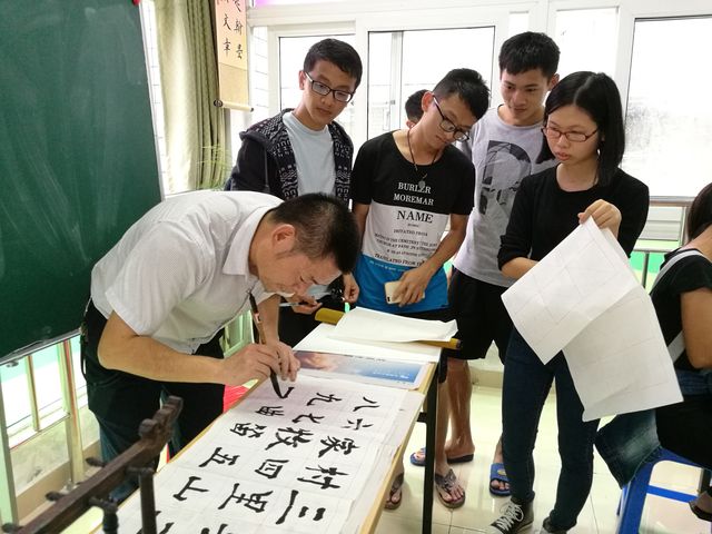 在活动的开始,苗老师为我们讲了有关毛笔的知识比如握笔的姿势、毛笔的选择以及毛笔的使用方法及保养、注意事项等等。接着苗老师又给我们介绍了书法的历史,让同学们更好的了解书法。在给大家练习之前,苗老师详细地给大家演示了一些重要的笔画,以防同学们出错。