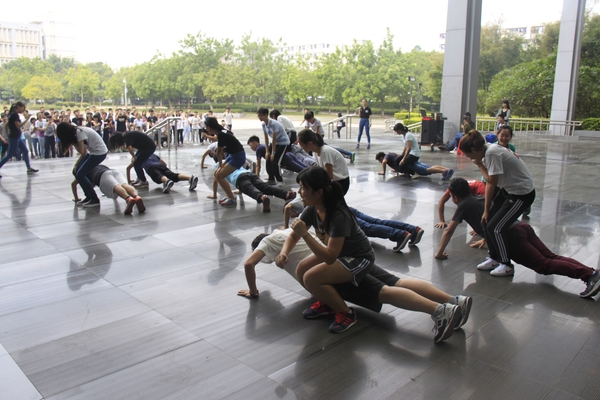 在每个游戏惩罚环节,每组受罚时都大声的报数,其中,在“动感火车”环节后,小部委们为了帮自己队长减轻惩罚,都自高奋勇的到台上和队长一起接受惩罚。