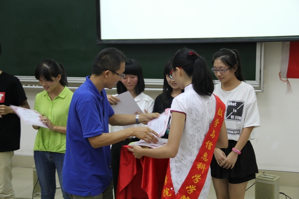 经过三个环节的比拼,结合评委的分数和观众们的投票,获奖班级也随之产生了。顾老师为荣获桂冠的数学141班颁奖,二等奖花落数学151班第二组,杜老师为他们颁奖,胡老师为荣获三等奖的信安151班和获得最佳人气奖的班级是数学142班颁奖。在观众的掌声中,中华经典诵读比赛落下了帷幕。