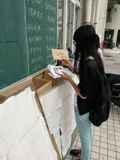 活动中,大家才发现我们学校有许多自行车,但有些放在马路边又许久不用,妨碍同学们的行走,因此,我们将一些自行车放到车棚,将一些零散摆放的自行车整齐地放在一起,给同学们腾出宽阔的行走之路。整理明信片时发现每周有许多来自全国各地的明信片,而许多同学不清楚在宿管那里有他们的明信片,我们特整理出每一层楼的明信片并送到他们手中。