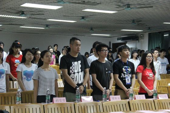 主持人对表彰大会作简要介绍后,与会全体成员起立,奏唱国歌。随后曾学毛副书记、顾书老师、杜亚辉老师、胡啟岚老师和陈启彪老师依次宣读了《关于表彰我院2014—2015学年课外学术科技活动获奖学生的通报》、《关于表彰我院2014—2015学年学风建设先进集体和学习先进个人的通报》、《关于表彰我院2014—2015学年社会实践和志愿服务先进个人的通报》、《关于表彰我院2014—2015学年优秀学生干部、优秀个人、优秀工作部门及协会的通报》和《关于表彰我院2014—2015学年体育运动先进个人的通报》。紧接着是颁奖环节,本次大会先后颁发了“科研先进个人”、“14级全优生”、“优秀部门”、“优秀协会”、“优秀学生干部”、“优秀个人”、“志愿服务先进个人”、“体育运动先进个人”八个奖项,在热烈的掌声中,获奖代表依次上台领奖并与颁奖的领导老师合影留念。接着由主持人宣读了模拟课堂和说题大赛的获奖名单。