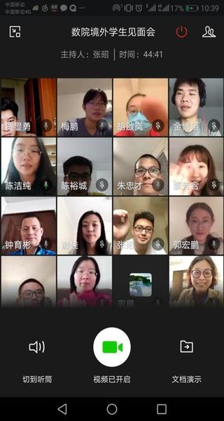 一直以来,数学学院高度关注学生在境外的情况,通过建立微信群保持与学生们的每日沟通,此次见面会再次拉近了学院与学生的距离,为他们送去了关怀和帮助,学院将继续关注境外学生情况,及时帮助学生解决困难。云端传情,未来可期,学院等待着你们学成归来!