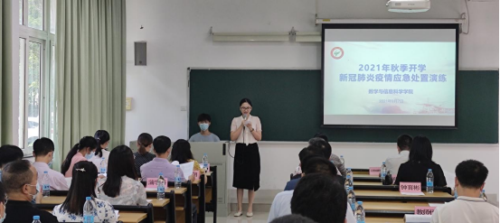 为进一步检验和提高学院疫情应急处置能力,保障师生生命安全和身体健康,9月8日下午,数学学院开展2021年秋季开学新冠肺炎疫情防控应急处置演练。学院疫情防控领导小组全体成员、教工党支部书记、全体辅导员、教师代表和学生代表参加了本次演练。建筑学院党委书记王志明、副书记周世慧,学校疫情防控小组成员、校门诊部肖健梅老师莅临指导。